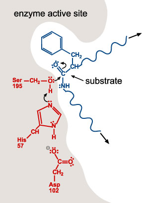 The catalytic process mediated by an enzyme takes place in a depression or cleft that exposes the substrate to only a few of the hundreds-to-thousands of amino acid residues in the protein chain. The high specificity and activity of enzyme catalysis is sensitively dependent on the shape of this cavity and on the properties of the surrounding amino acids.