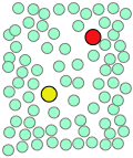 When thermal motions occasionally release a solute molecule from this trap, it will jump to a new location. The jumps are very fast (10–12 - 10–13 sec) and short (usually a few solvent-molecule diameters), and follow an entirely random pattern, very much as in Brownian motion.