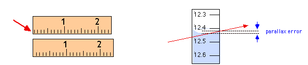 One common source of systematic error is failure to use a reliable measuring scale, or to misread a scale. For example, you might be measuring the length of an object with a ruler whose left end is worn, or you could misread the volume of liquid in a burette by looking at the top of the meniscus rather than at its bottom, or not having your eye level with the object being viewed against the scale, thus introducing parallax error.