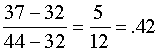 The molar mass of the mixture is (1.65 g L–1)(22.4 L mol–1) = 37.0 g mol–1. The molecular weights of O2 and N2 are 32 and 44, respectively. 37.0 is 5/12 of the difference between the molar masses of the two pure gases. Since the density of a gas mixture is directly proportional to its average molar mass, the mole fraction of the heavier gas in the mixture is also 5/12: